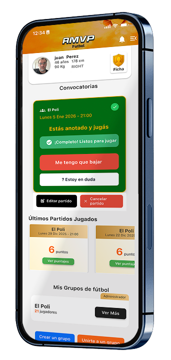 Sí, porque WhatsApp no ordena: AMVP estructura la convocatoria, baja discusiones y evita el “me bajé y nadie se enteró”. El chat vuelve a ser para el tercer tiempo.